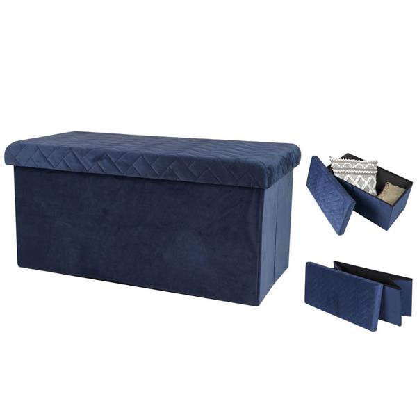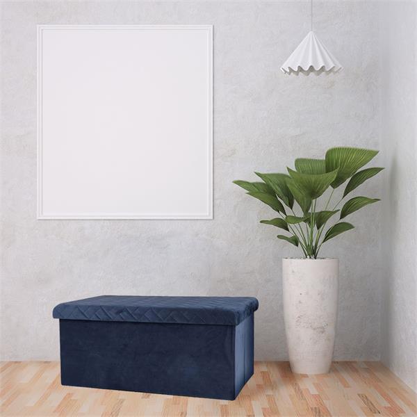 Foldable Storage Ottoman - Blue Velvet 76x38xH38cm