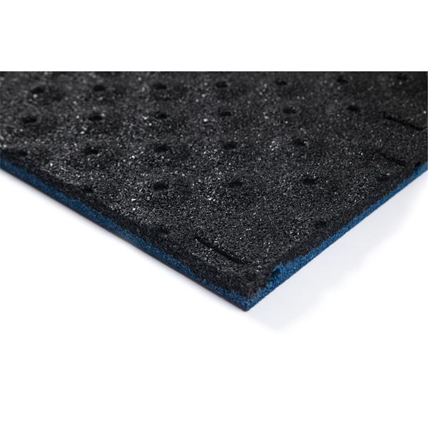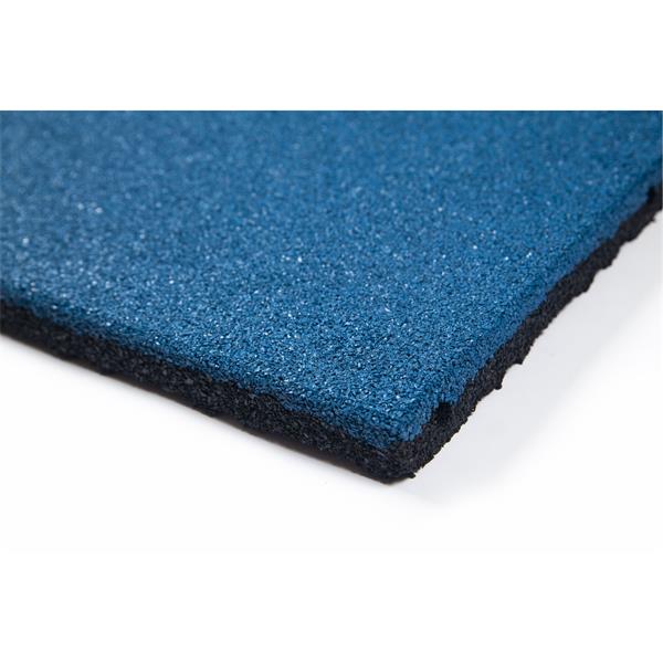 Rubber Tile 30mm Blue. Interlocking safety tile which can be used for high level safety surface in domestic and commercial installations. Suitable with play equipment. Plastic dowels locking system allows it to be fit without adhesive.
