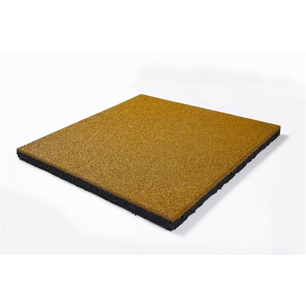 Rubber Tile 30mm Yellow. Interlocking safety tile which can be used for high level safety surface in domestic and commercial installations. Suitable with play equipment. Plastic dowels locking system allows it to be fit without adhesive.